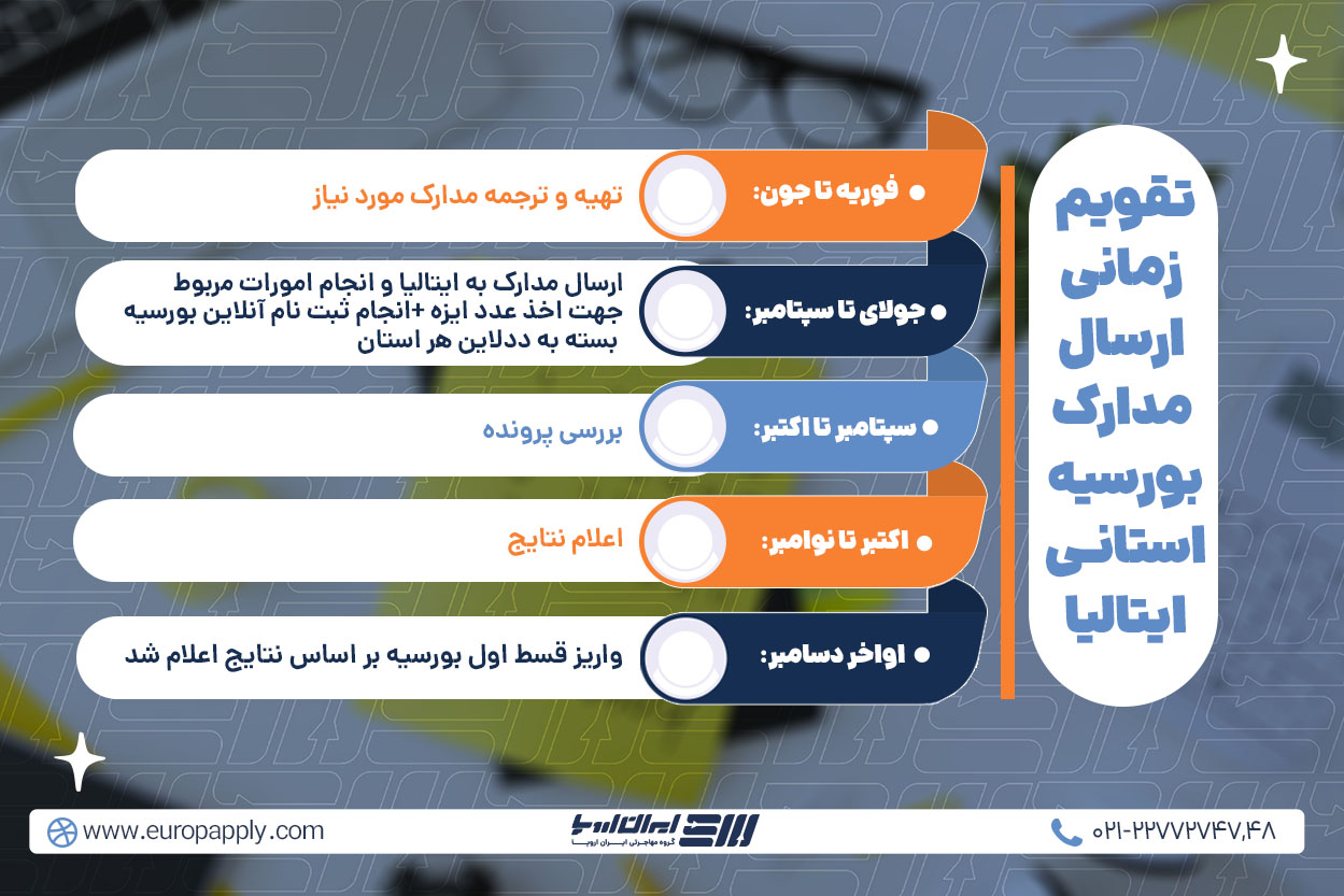اگر بخواهیم مثالی بزنیم برای یک استان سختگیر در این رابطه می توانیم به استان پیمونته (دانشگاه پلی تکنیک تورین، دانشگاه تورین، دانشگاه پیه مونته و…) اشاره کنیم. از سال 2023 این استان به طور سختگیرانه ایی شرایط دارایی و درآمد تمامی اعضای خانواده را درخواست کرده و دیگر فقط با سرپرست در این استان کار راه نمی افتد. اما کماکان اکثر استان ها مثل استان لومباردیا (پلی تکنیک میلان، دانشگاه میلان، دانشگاه پاویا، آکادمی بررا و …) یا استان امیلیا رومانیا (دانشگاه بولونیا، دانشگاه پارما، آکادمی هنرهای زیبای بولونیا و …) و خیلی دیگر از استان ها کماکان شما با ارائه مدارک سرپرست به تنهایی می توانید از شرایط بورسیه بهرمند شوید.